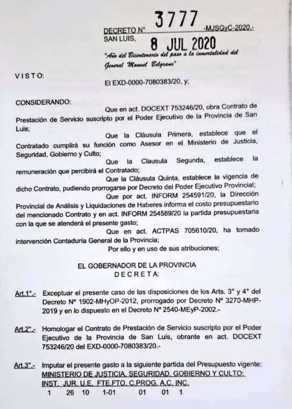 El contrato fue homologado de manera inmediata mediante los decretos 3656-MJGyC-2020 y 3777-MJGyC-2020, algo que, para muchos, denota una celeridad inusual y levanta sospechas sobre la transparencia del procedimiento.